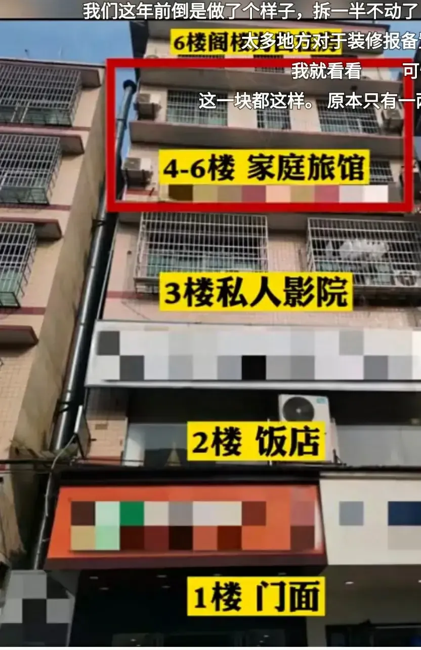 最让人不能接受的是这起惨剧是一场彻彻底底的人祸,事故的主要原因在于房屋违建,这栋自建房中已经被房东租给了很多商户,一楼是麻辣烫和一家饮品店,二楼是一家饭馆,三楼到6楼是一家宾馆,7楼是房东一家的自住房,7楼往上还有一层彩钢房,本来是二三楼的房子,加盖到8楼。